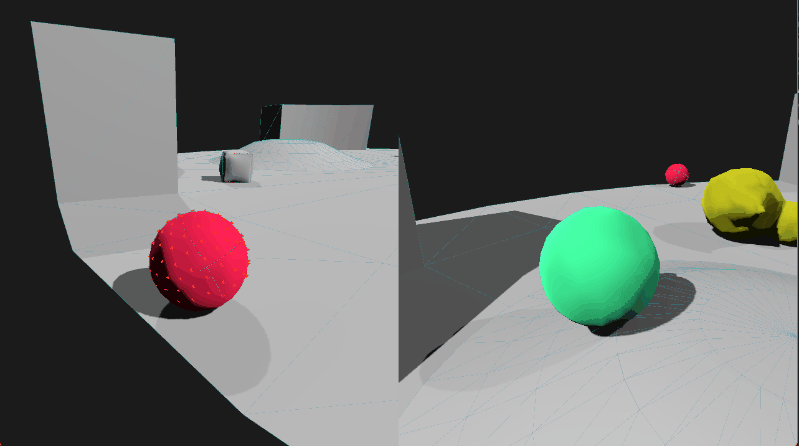People liked how the controller for the previous game feels with momentum. So at the start this project, I was going for 3D soft body physics, with local multiplayer for extra chaos. The gif below shows what the project looked like at the time.