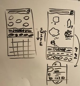 I iterated through a couple different designs. I thought I should lean into the touchscreen gesture input, because designing for a smaller touch screen means finding space for all the functionalities is difficult, but it brings up more opportunities to explore because it has a different set of affordances, and i've already got codes that reads dragging motion. I went with a vertical drag over a horizontal one because it allows me to collapse irrelevant parts and not repeat any information.