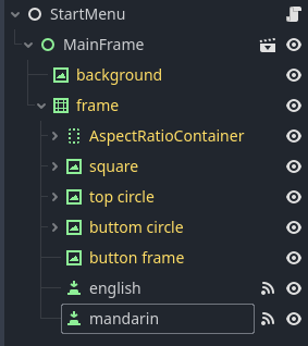 I’m trying to save repeatedly used structures as scenes as much as I can. For example, the main frame structure is used for starting screen and loading screen, so the basic structure is saved separately. And I can expand and add in the extra elements in a deperate scene.